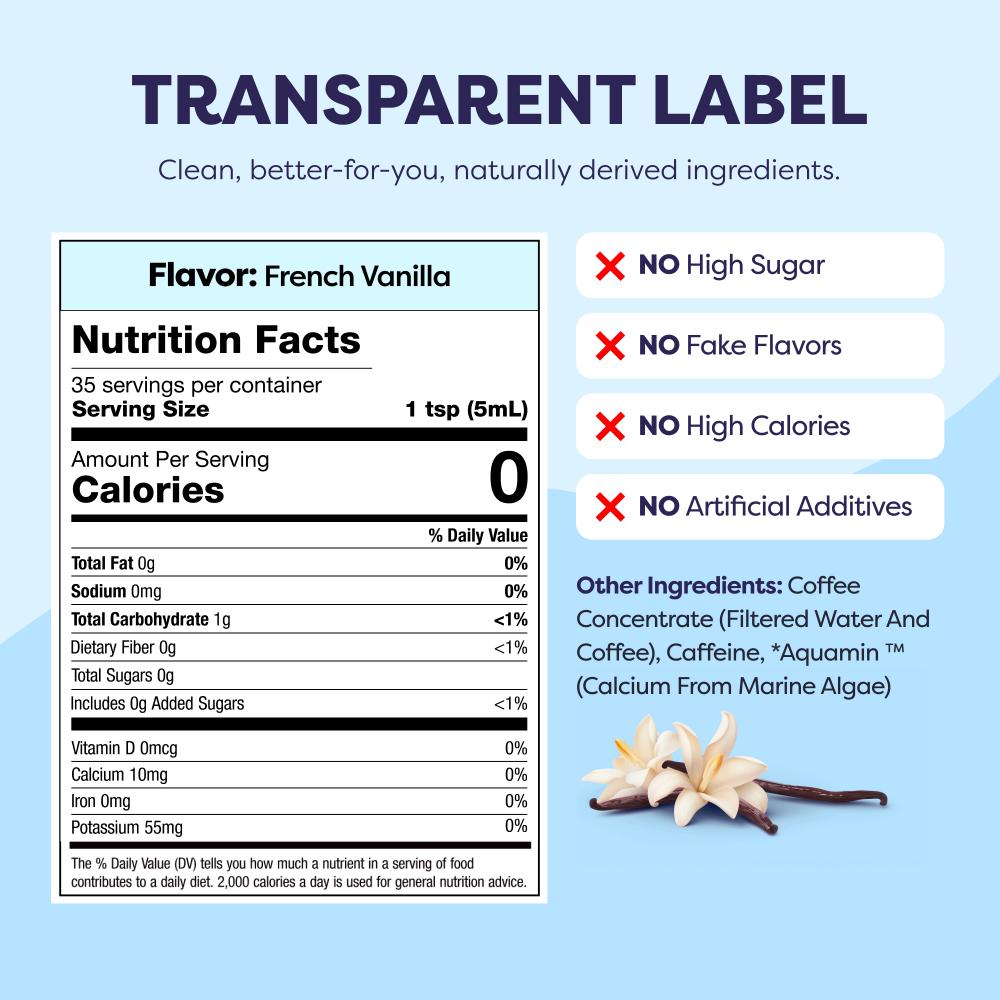 Coffee Concentrate (Filtered Water and Coffee), Caffeine, *Aquamin ™ (Calcium from Marine Algae)