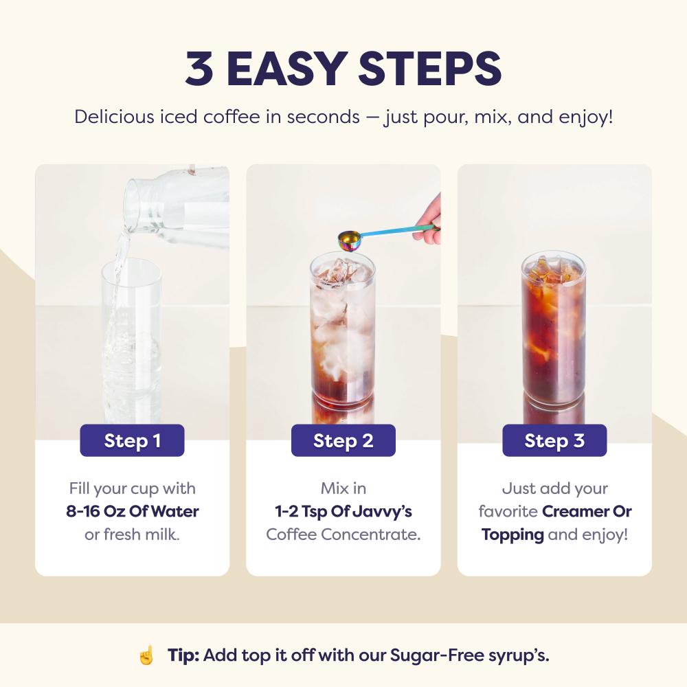 - Mix in 1-2 tsp of Coffee Concentrate.