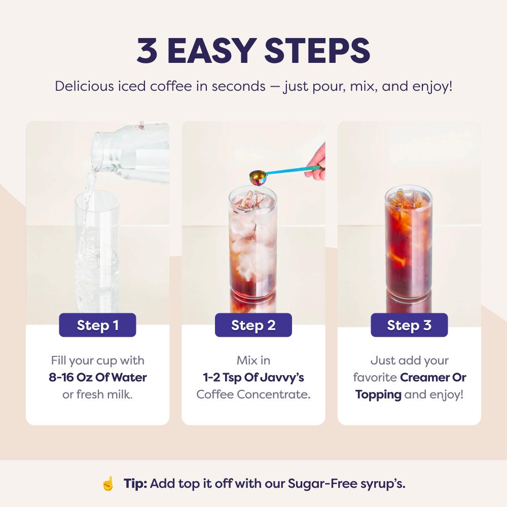- Mix in 1-2 tsp of Coffee Concentrate.